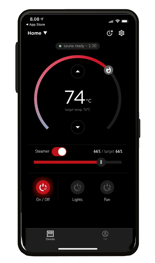 So…..I fired it up to 130 to start, turned on the red light and linked the Bluetooth. In a 70 degree room it took very little time to get to temperature. I put on some “Indian Chill” on Spotify and climbed in. The sauna works great and is beautiful! I think we are going to be VERY happy with our purchase! There is a QR code on the unit so you can register it of it's warranty online.